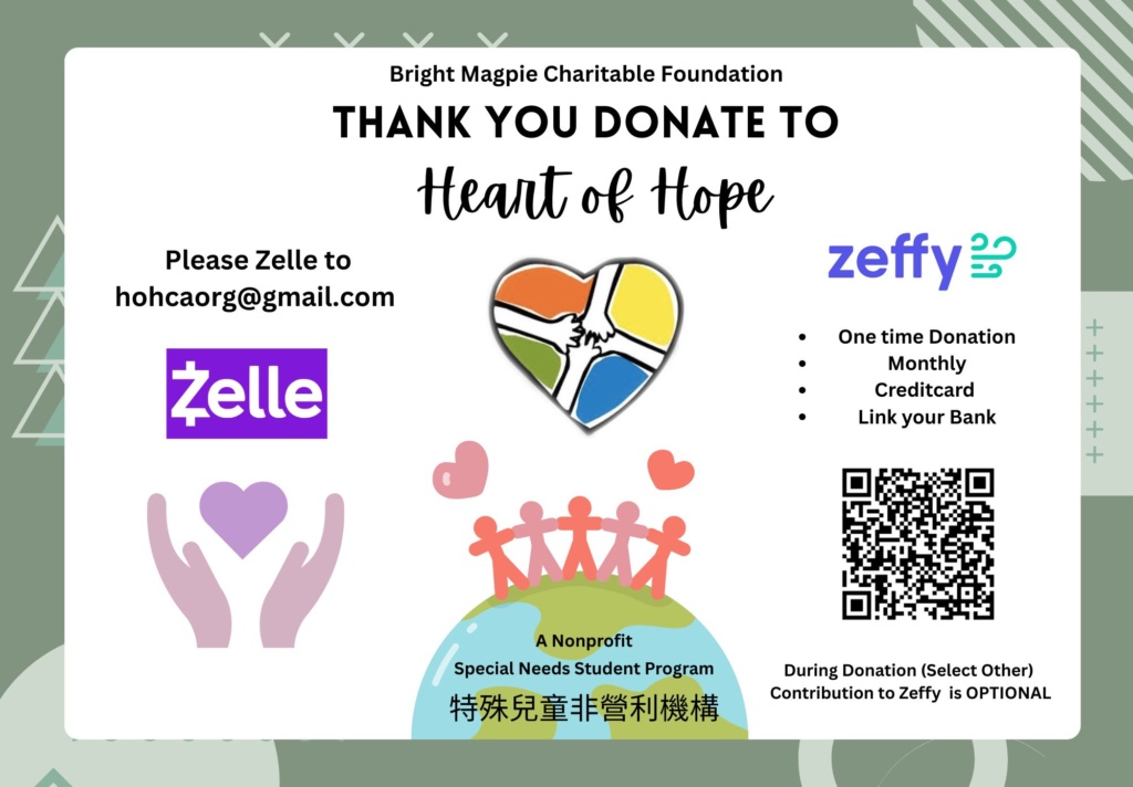 We accept CASH or CHECK donate though Zeffy or Zelle.